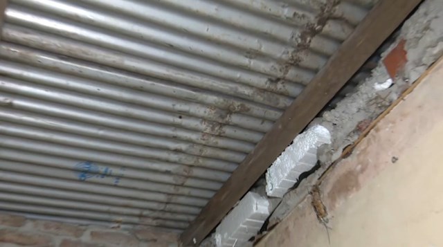 Una pared en construcción cedió por la intensidad del viento y cayó sobre el techo de chapa, provocando un agujero y obligando a evacuar a la familia que reside allí.