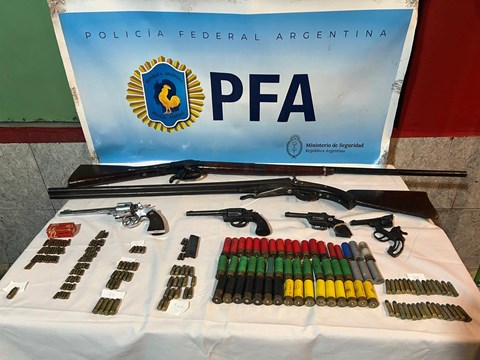 Por su parte, Joana B. fue imputada por tener tres escopetas, una pistola calibre .25, un revólver .44 y 37 municiones en el mismo local.