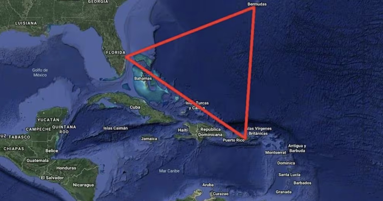 El Triángulo de las Bermudas no figura en mapas oficiales ni está delimitado por organismos internacionales. La forma triangular surge de la conexión entre Miami, Bermuda y Puerto Rico, una referencia popularizada en publicaciones del siglo XX.
