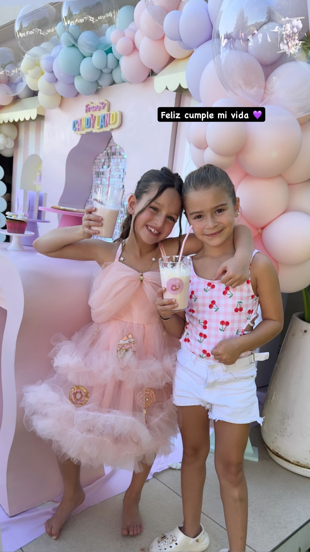 La celebración tuvo como eje una temática “all pink”, con una ambientación dominada por diferentes gamas de rosa pastel y detalles brillantes. La casa se convirtió en un universo encantado, con globos, estaciones de juegos y una torta colorida decorada con golosinas, pensada especialmente para la ocasión.