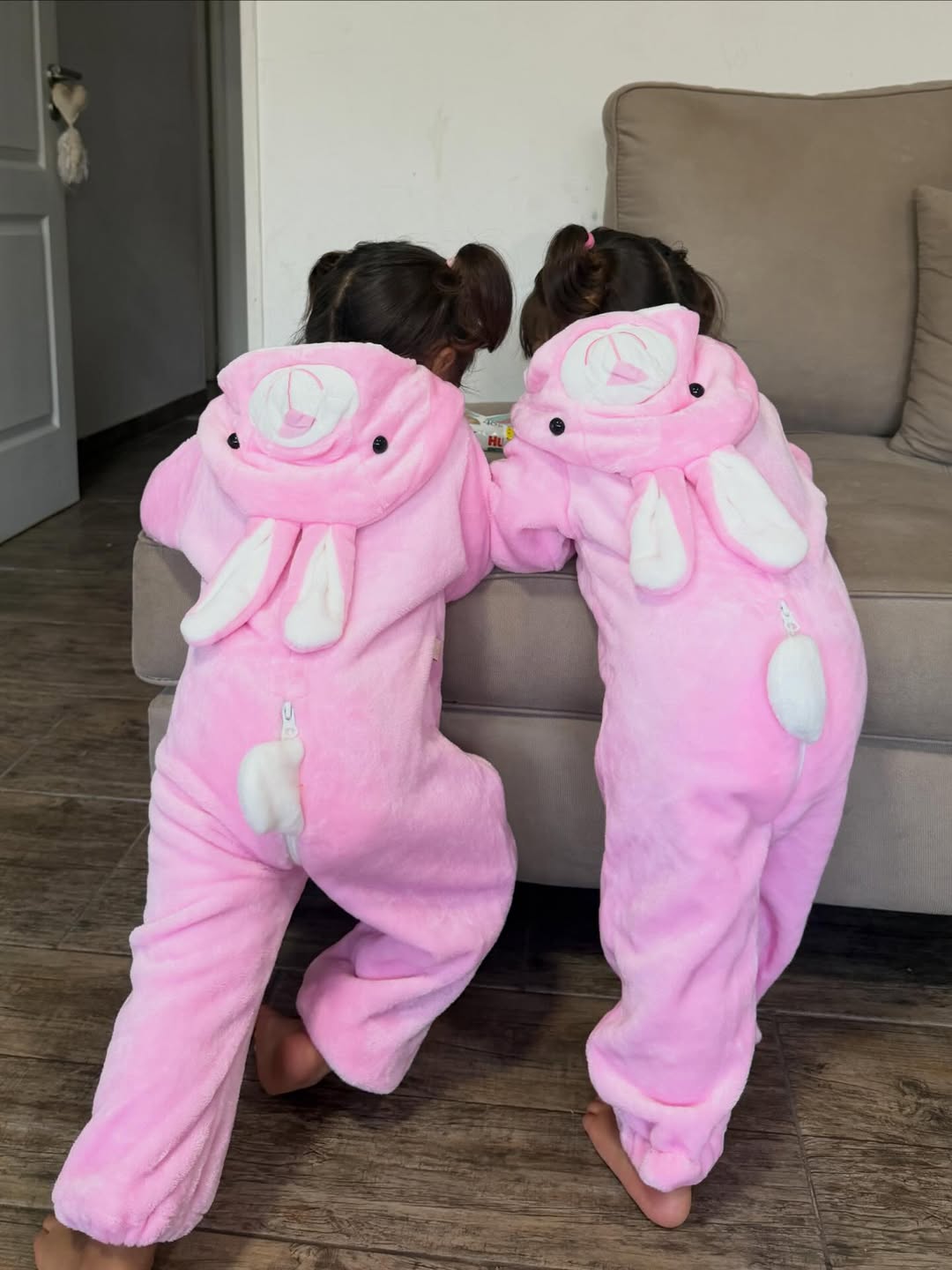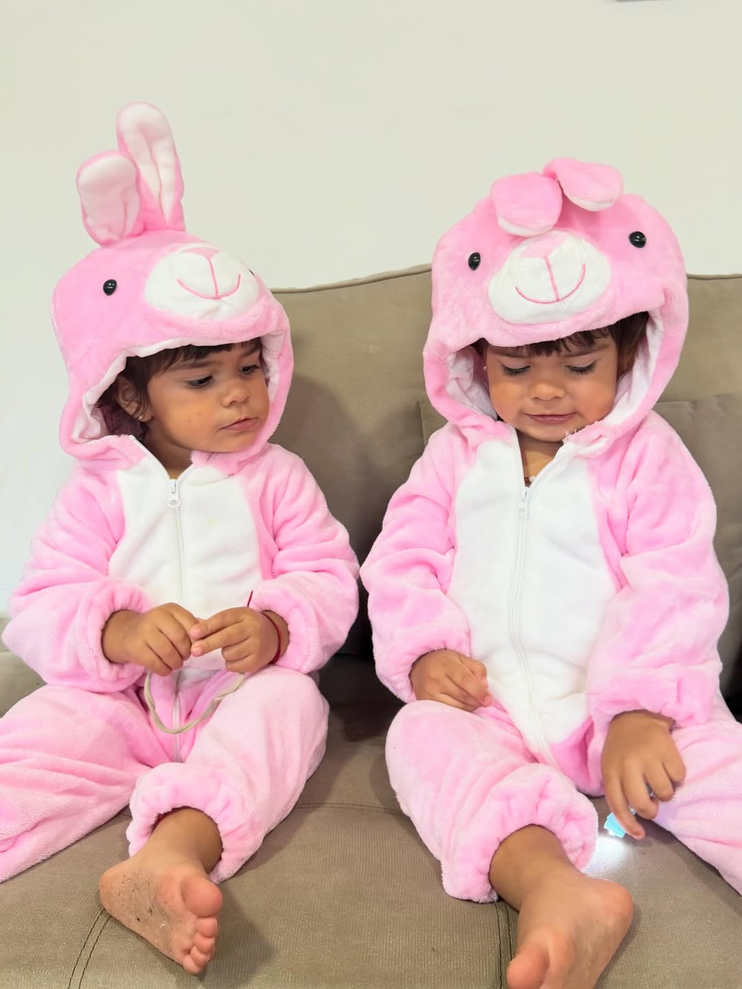En el carrusel de imágenes compartido en su cuenta de Instagram, las gemelas aparecieron con trajes de conejito rosa, acompañados de orejas mullidas y detalles que realzan su ternura. La producción convirtió a las pequeñas en auténticas “mini modelos”, captando la atención de los fans con poses naturales y expresiones adorables.