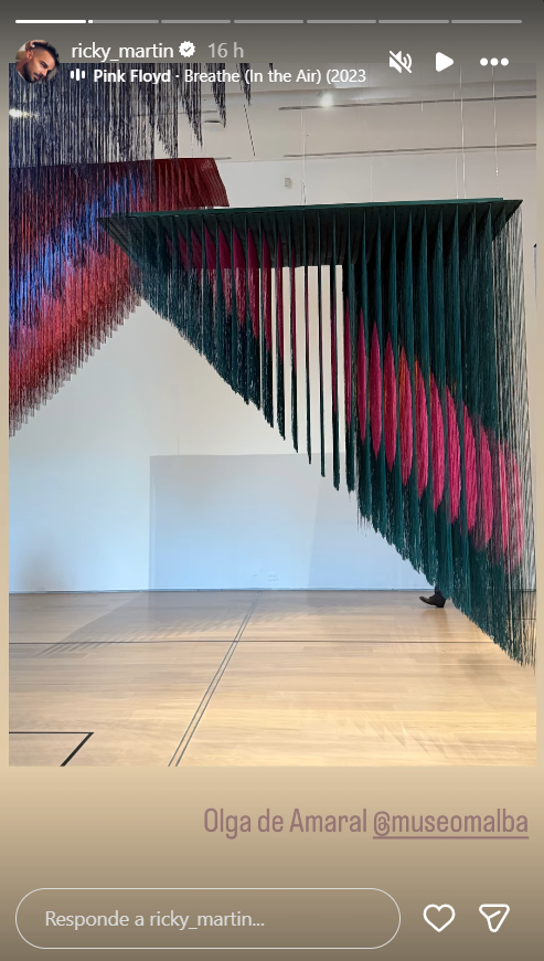 A través de sus redes sociales, el cantante compartió imágenes y videos en los que capturó detalles de las piezas exhibidas, destacando la relación entre el tejido y el espacio, eje central de la muestra. Las obras, de gran escala y fuerte impronta visual, llamaron particularmente su atención.