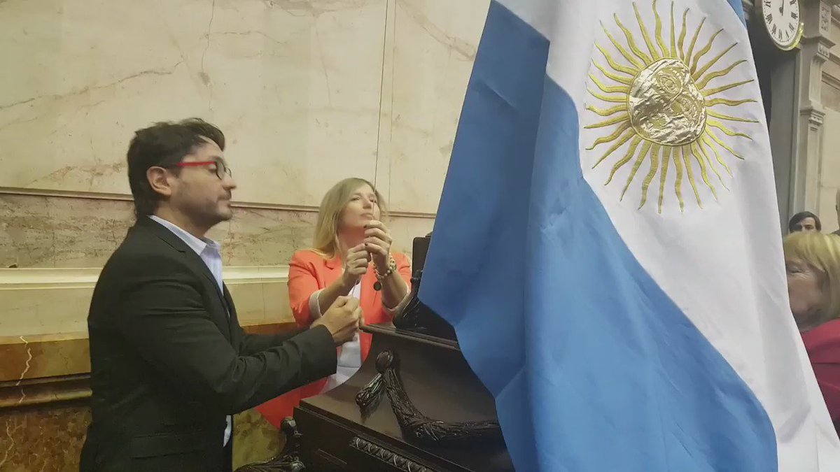 En #SesiónPreparatoria, izaron la bandera del recinto la Diputada @CrisAlvarezRod y el Diputado @facundogarreton.