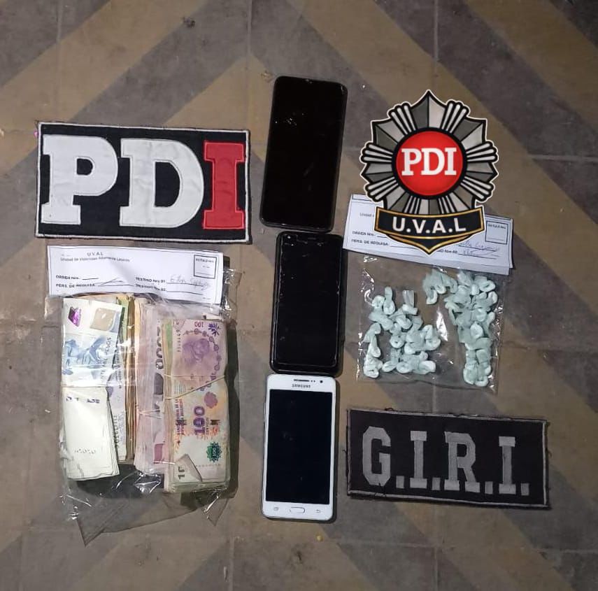 Los agentes de la PDI, a través de la Unidad de Violencias Altamente Lesivas (UVAL) de la Región II Rosario y con la intervención de la fiscal Carla Ranciari, del Ministerio Público de la Acusacion (MPA), allanaron dos domicilios ubicados en Dr. Riva al 100 y Garibaldi al 200, barrio Tablada, y además secuestraron nueve teléfonos celulares, una balanza digital de cocina en desuso, una moto Honda XR 150, $1.948.100 en efectivo, y 42 envoltorios de nylon compatible con cocaína, como así también recortes de nylon utilizados para fraccionamiento. Para el hallazgo de la droga, fue importante la tarea de la División Canes Detectores de la PDI, con la intervención del perro “Bono”, quien realizó tareas de búsqueda en las viviendas mencionadas.