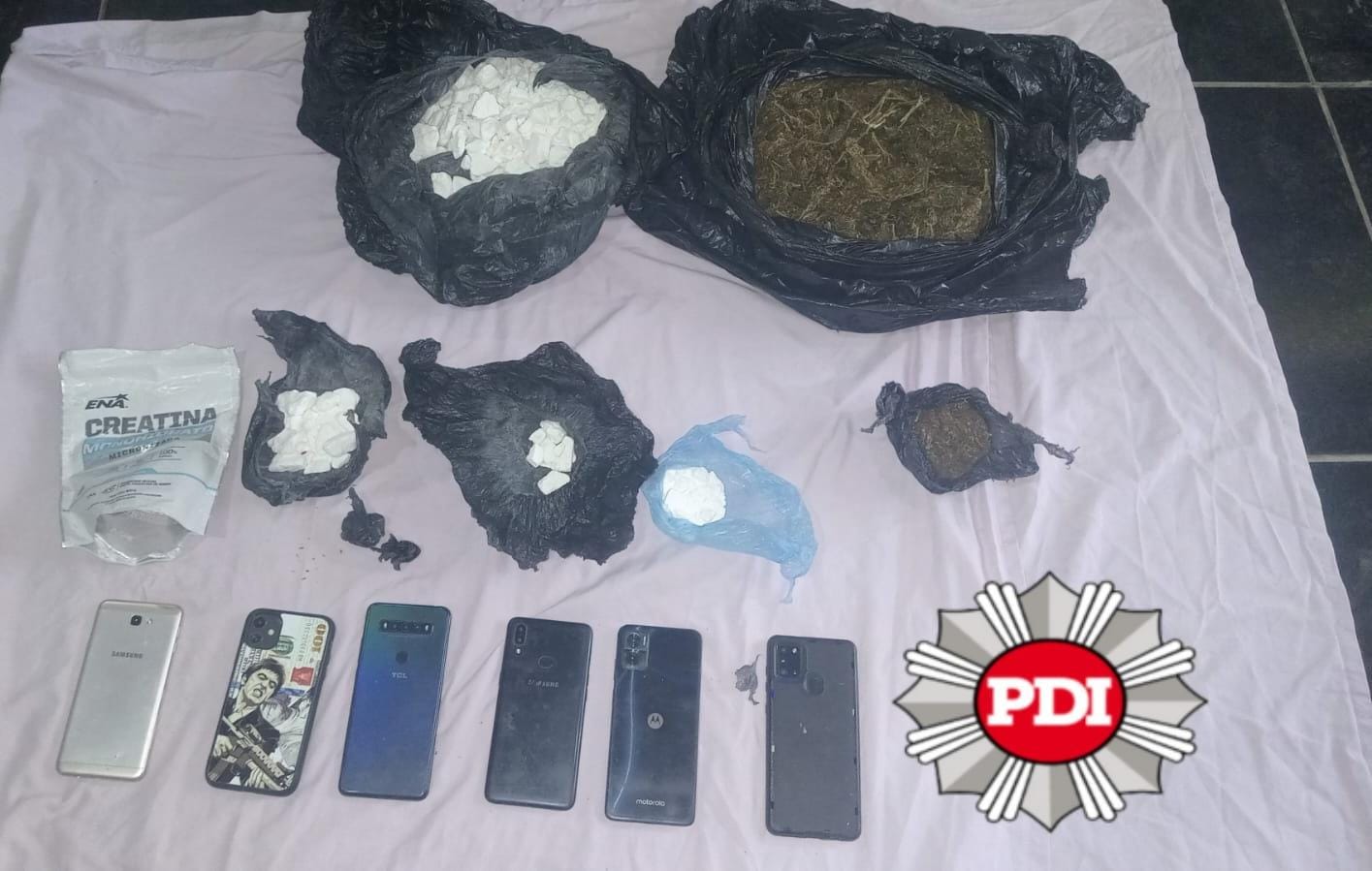 En el mismo procedimiento, y sin vinculación con la causa de evasión, fueron aprehendidos Claudia R. (29) y Axel D. (23), tras el hallazgo de sustancias ilícitas. Se secuestraron 740 gramos de marihuana y 955 gramos de cocaína, además de dinero en efectivo, celulares, una balanza de precisión y elementos de fraccionamiento.