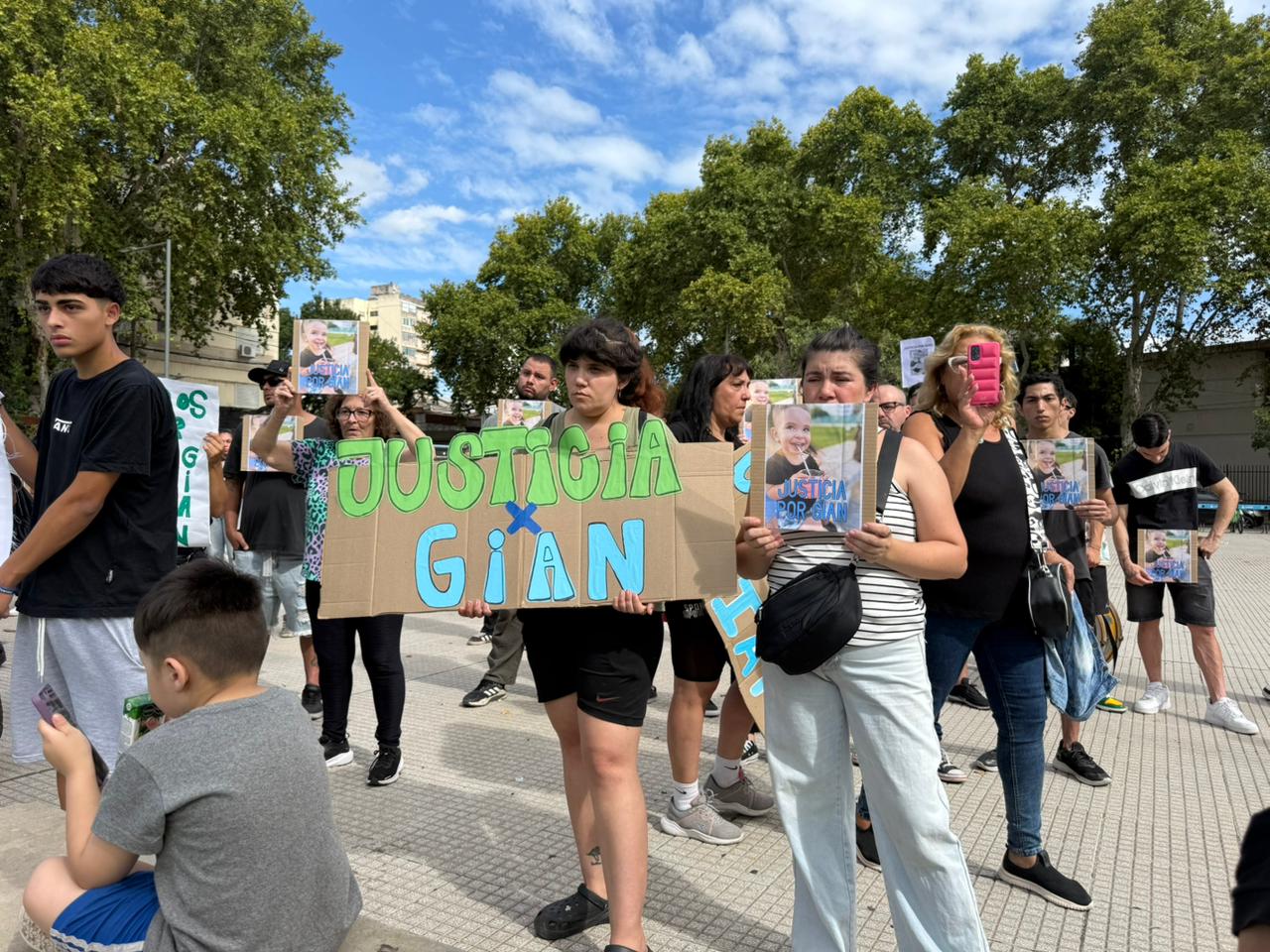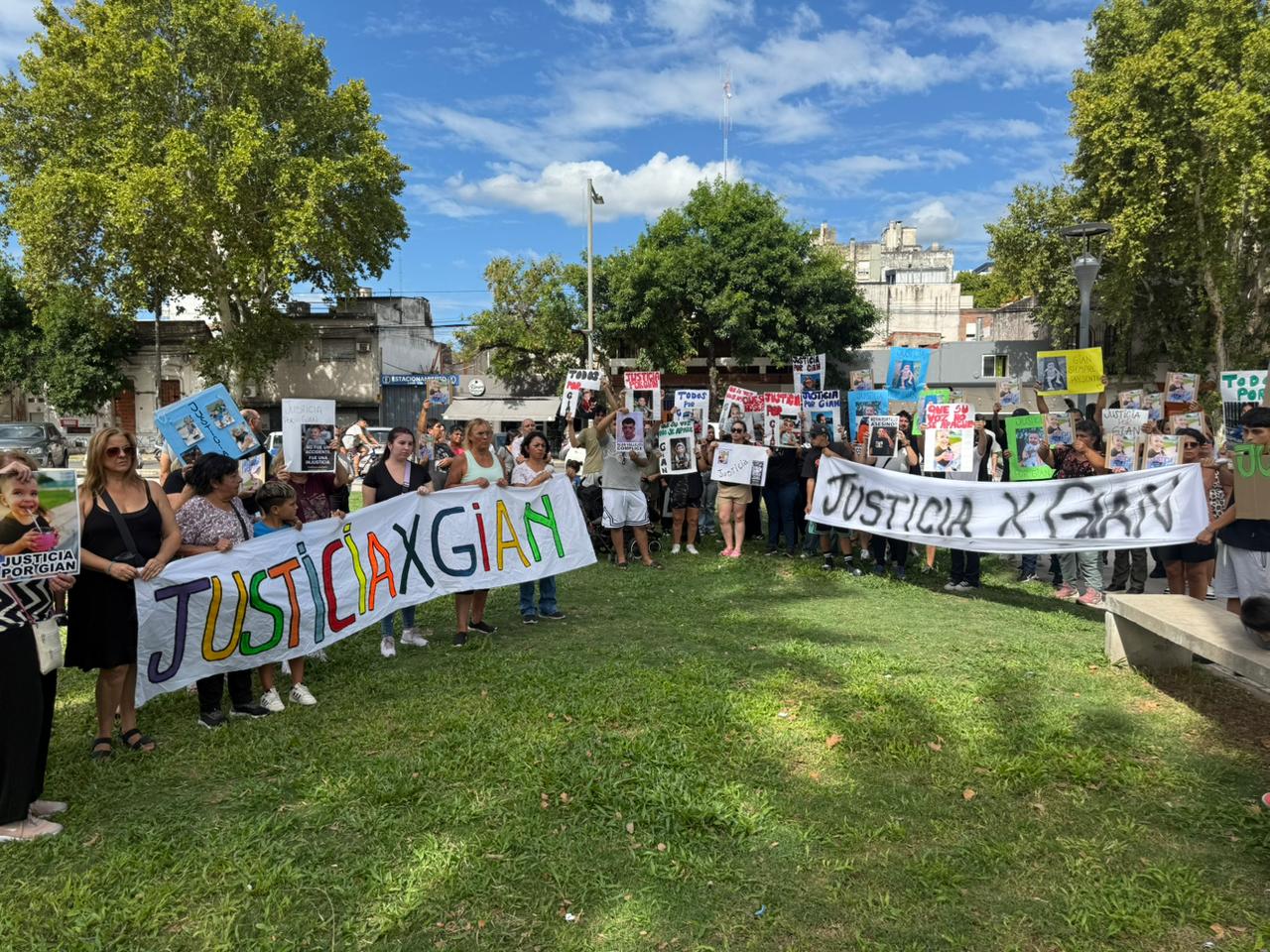 La audiencia comenzó a las 16 horas en el Centro de Justicia Penal, donde la fiscal Agustina Eiris acusa formalmente a los tres sospechosos. Afuera del edificio, familiares y allegados de Gian se concentran desde las 15 en una movilización en reclamo de justicia.