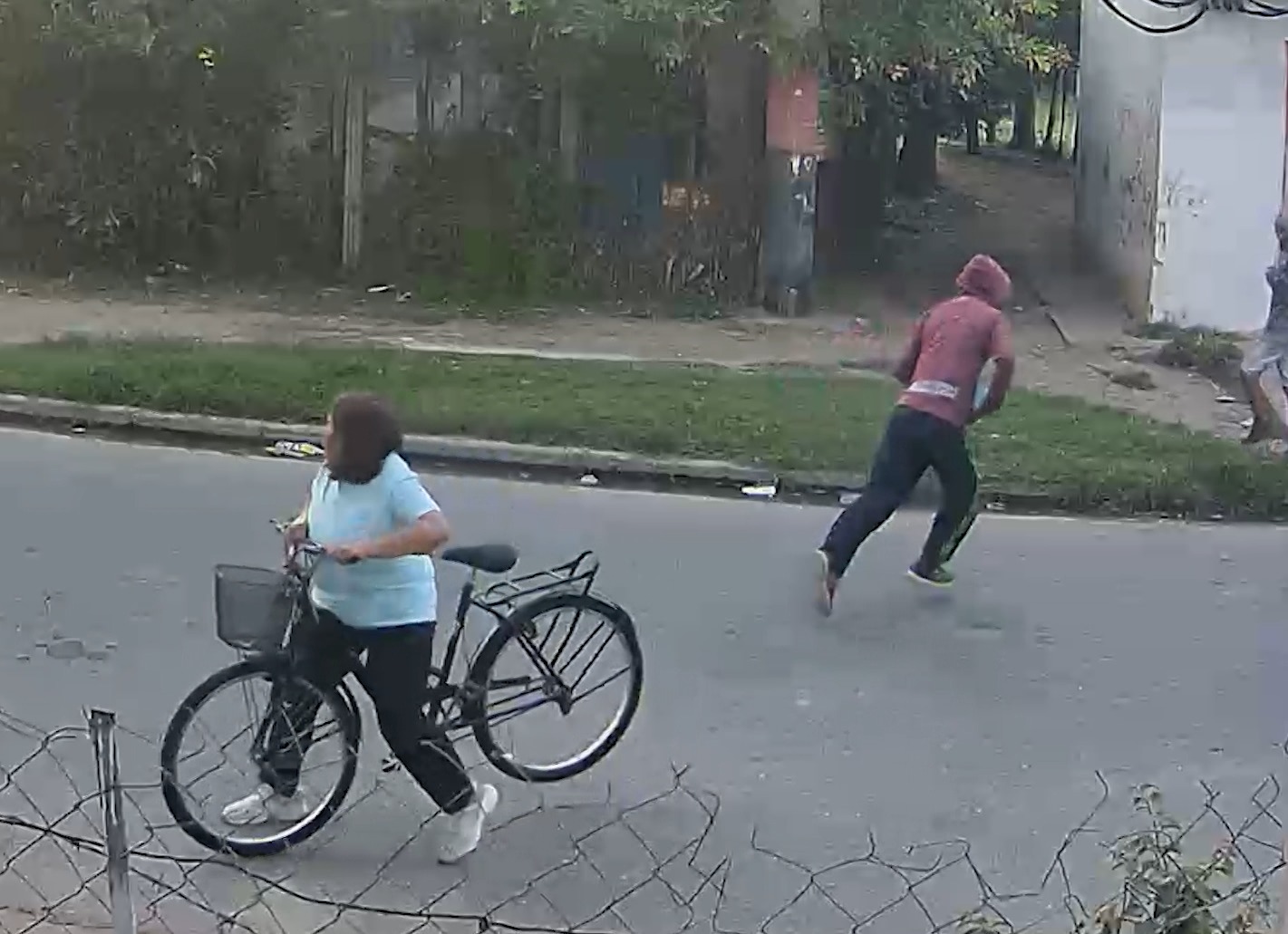 Dos jóvenes interceptaron a una mujer que circulaba en bicicleta por Pueyrredón al 4400 y le sustrajeron una mochila que llevaba en el canasto, para luego escapar por un pasillo que conecta con el interior del barrio.