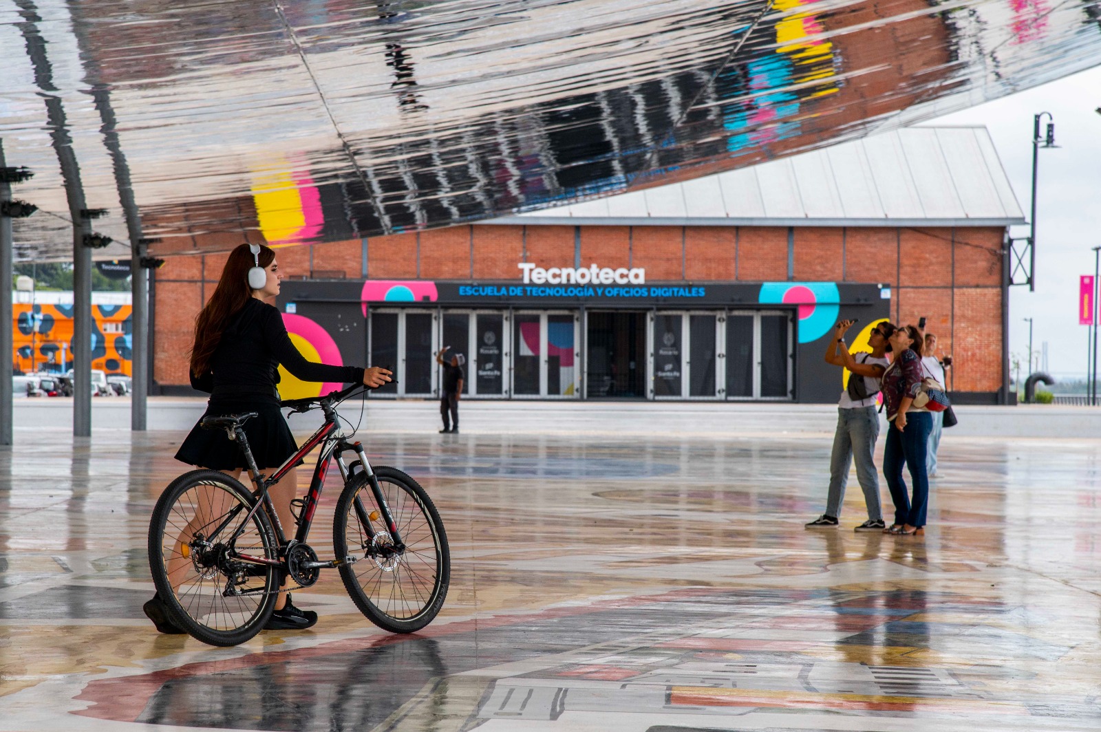 El mural, titulado Río Arriba, ocupa más de 2.000 metros cuadrados y fue dirigido por el artista Martín Ron junto a creadores locales. La pieza combina escenas, símbolos y gestos de la cultura rosarina en un formato de stickers que invitan a experimentar el arte urbano de manera innovadora.