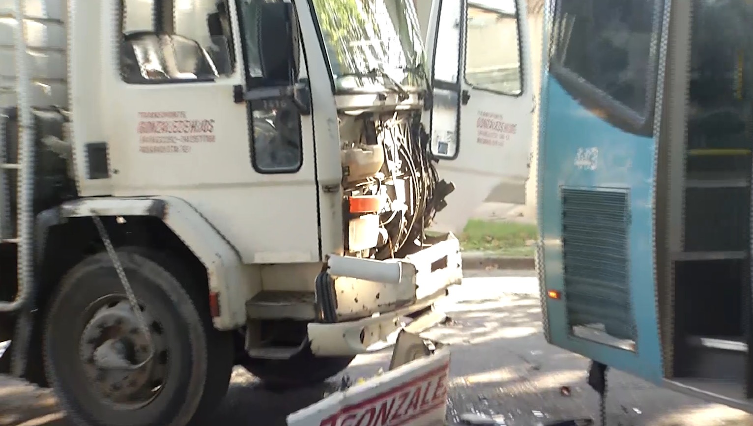 Ambos vehículos registraron daños materiales importantes, especialmente en el lateral del colectivo y el frente del camión.
