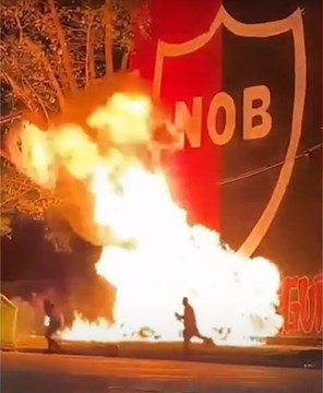 Un grupo de al menos ocho jóvenes encapuchados provocó un incendio en un mural de Newell’s Old Boys ubicado en la intersección de Rouillón y Boulevard Seguí, en la zona oeste de Rosario.