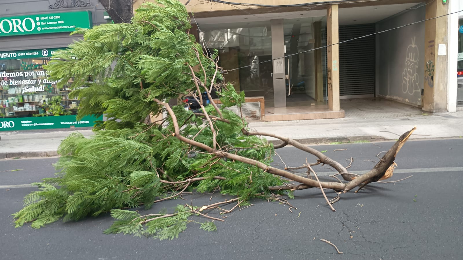 Por otro lado, también se registró la caída de un árbol en calle San Lorenzo al 1800, entre Dorrego e Italia. El ejemplar cedió a causa de las fuertes ráfagas de viento y, como consecuencia, un cable quedó colgando