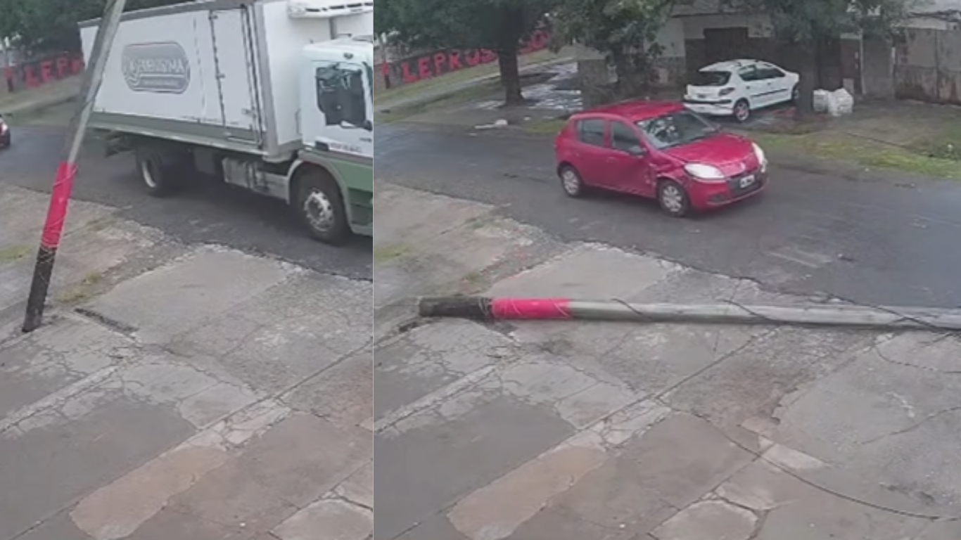 Según relataron vecinos, la columna ya estaba inclinada desde temprano, con los cables colgando a baja altura. El camión, por su dimensión, terminó de derribarla al enganchar el tendido.
