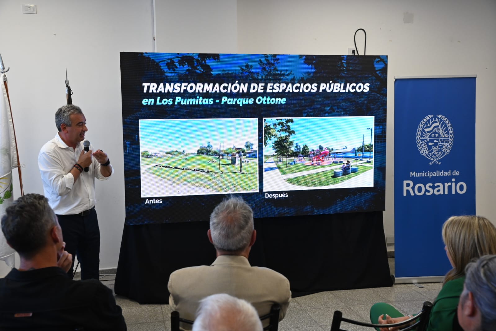 El intendente Pablo Javkin presidió este miércoles 25 de marzo la presentación ante vecinos y vecinas del proyecto de Urbanización Integral Noroeste que comprende una inversión para los barrios Empalme Graneros y Los Pumitas, donde se ejecutarán 145 cuadras de pavimento definitivo y 24 cuadras de pavimento provisorio, conductos pluviales y nuevos espacios públicos con mobiliario y juegos.