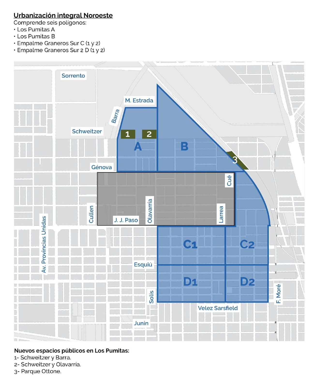 Por otra parte, en el marco de la transformación de todo el noroeste de la ciudad, de Sorrento a Junín, se completará la obra del pavimento definitivo de Empalme Graneros con 114 nuevas cuadras hacia el sur.