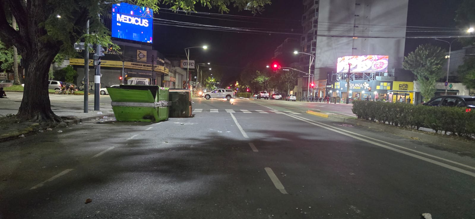 En la zona de Av. Pellegrini al 3100, varios contenedores ardieron y otros sufrieron daños, reflejando la tensión que se vivió en la jornada.